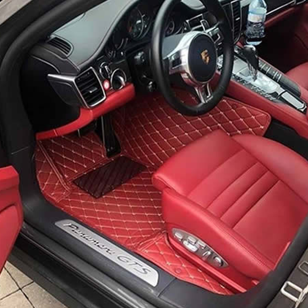 Unsere Premium-Matten bestehen aus hochwertigem PU-Leder mit gestepptem Karo-Muster. Sie sind robust, langlebig und sehen edel aus.